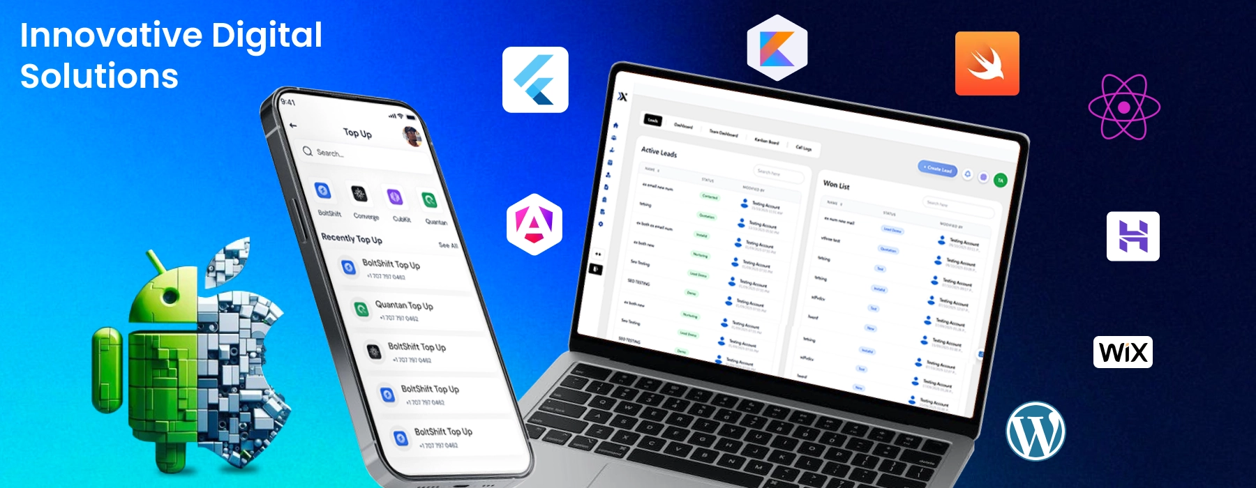 - Android applications are built with Kotlin and Android Studio for high scalability and performance.